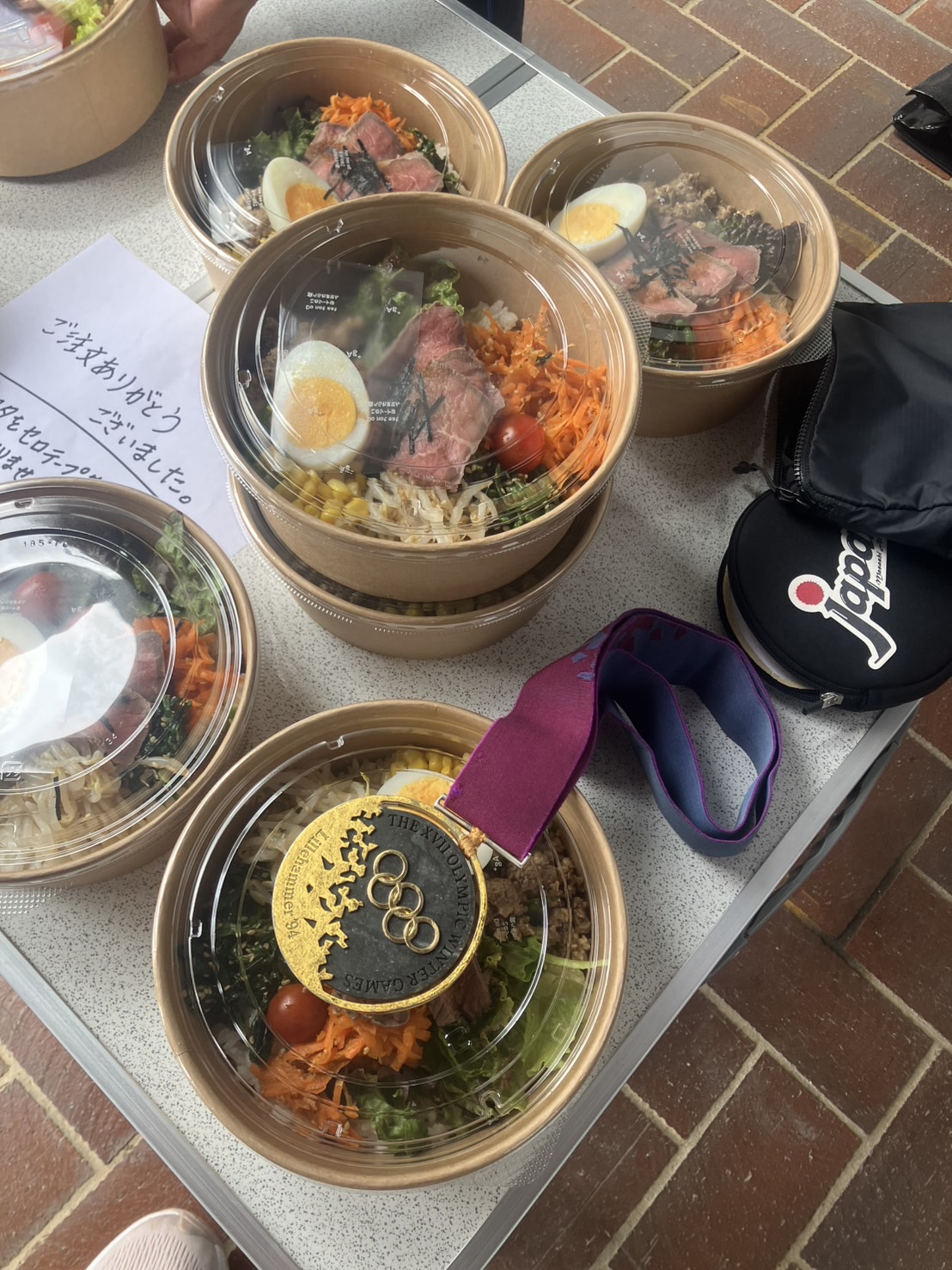 そして歩いた後のお楽しみは、大人気のGRACEヘルシー弁当🍱…なぜか金メダルが乗っています😅