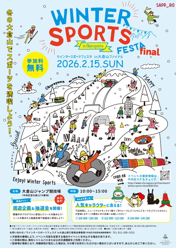 01 05 🎍✨あけましておめでとうございます✨🎍 Category : 大倉山ジャンプ競技場 , 札幌オリンピックミュージアム by ABE 🎍✨あけましておめでとうございます✨🎍 本年もどうぞよろしくお願いいたします! 2026年2月15日(日) ⛄️WINTER SPORTS FESTA in 大倉山〈final〉 開催します⛄️ そり遊びやチューブすべり、アイスホッケー体験など、 子どもから大人まで楽しめる冬のスポーツ体験が出来ますし、 参加費は 無料です 🎉 ぜひご家族・お友だちと大倉山へ遊びに来てください❄️ コメントを残す コメントをキャンセル メールアドレスが公開されることはありません。 * が付いている欄は必須項目です 名前 * メールアドレス * ウェブサイト 上に表示された文字を入力してください。 コメント 2026年1月5日 | Category: 大倉山ジャンプ競技場 , 札幌オリンピックミュージアム | No Comment