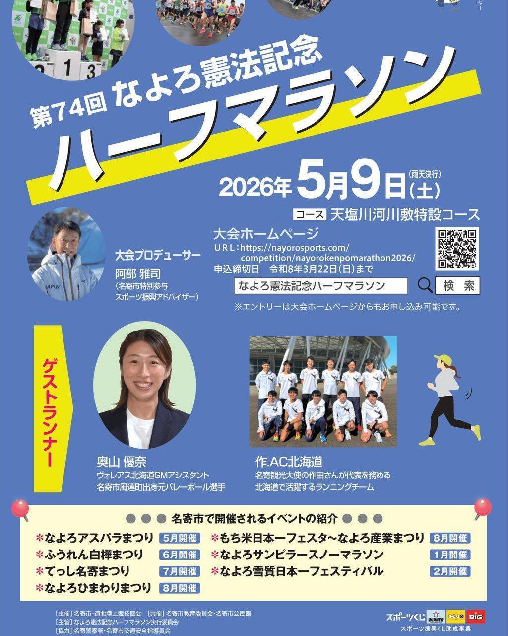 北海道で一番歴史がある「第74回 なよろ憲法記念ハーフマラソン2026」の エントリー受付中です!