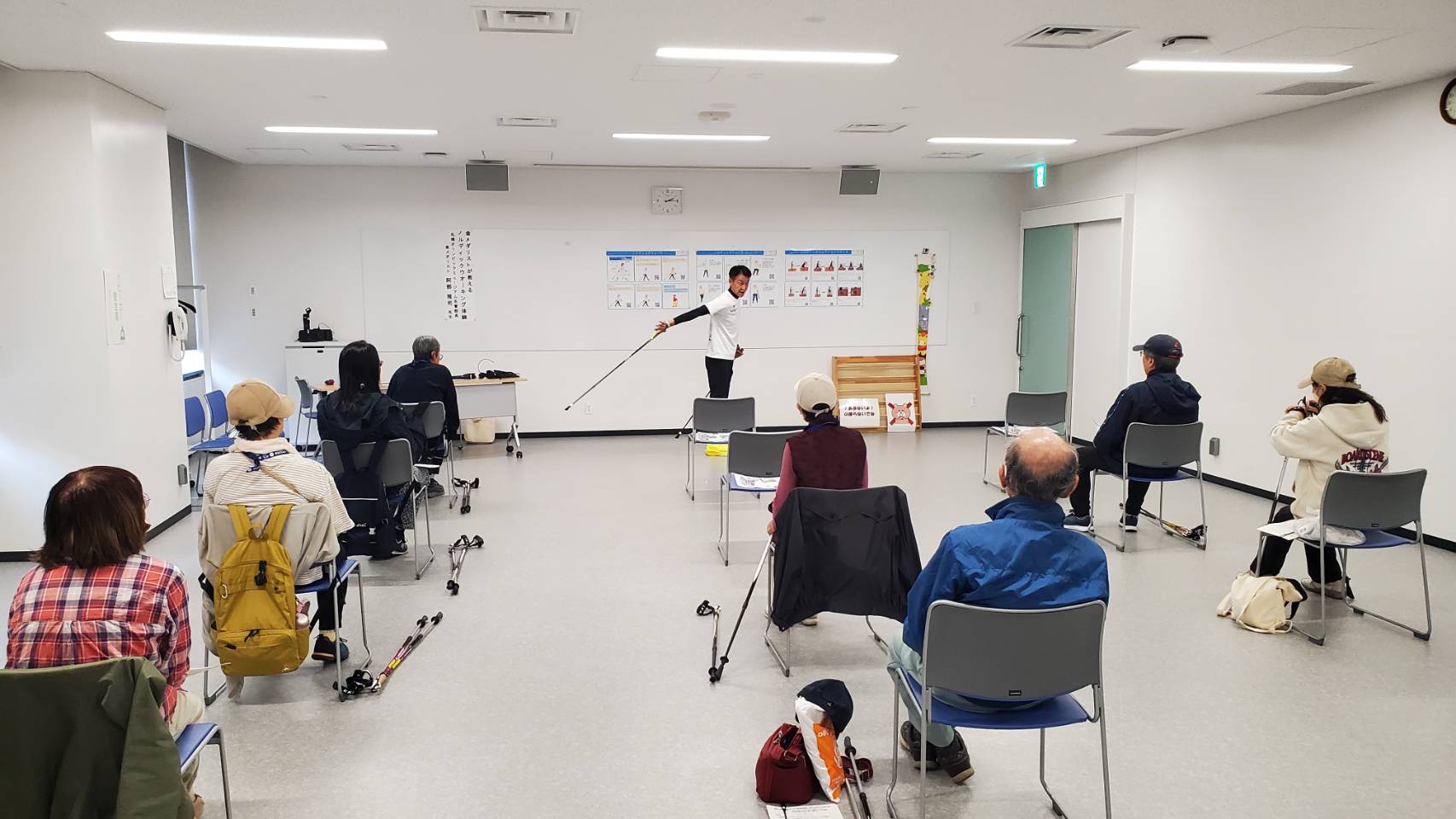 まずは講堂で、ノルディックウォーキングの効果や正しい歩き方について学び🧠、その後は秋晴れの空の下☀️ 実際に西11丁目からテレビ塔まで往復を歩きました🚶♀️🚶♂️